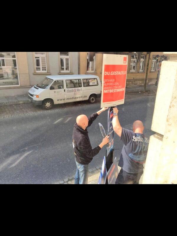 Netter Versuch…Leider kann man überhaupt nicht erkennen, was die Glatzköppe da aufhängen. Vielleicht gar CDU-, FDP- oder Grünen-Plakate?! Wenn schon gegen die AfD Stimmung gemacht werden soll, dann bitte auch mit Substanz und nicht so eine durschaubare Propaganda.
